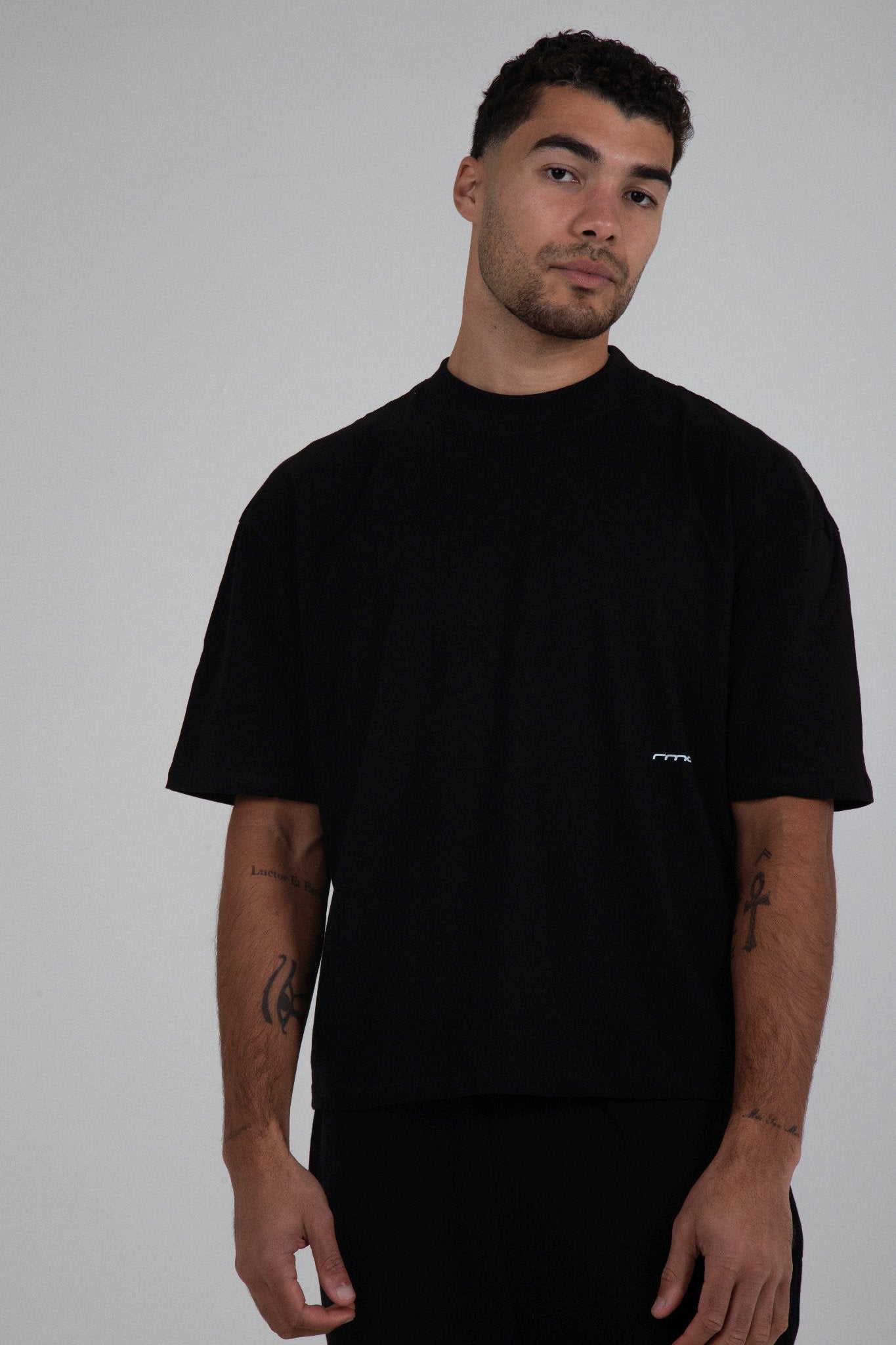 The T-shirt is constructed from a heavy-weight relaxed boxy fit 220gsm combed cotton. The visual highlight is the is the structure and fit of the silhouette and the overall minimal street aesthetic it compromises.