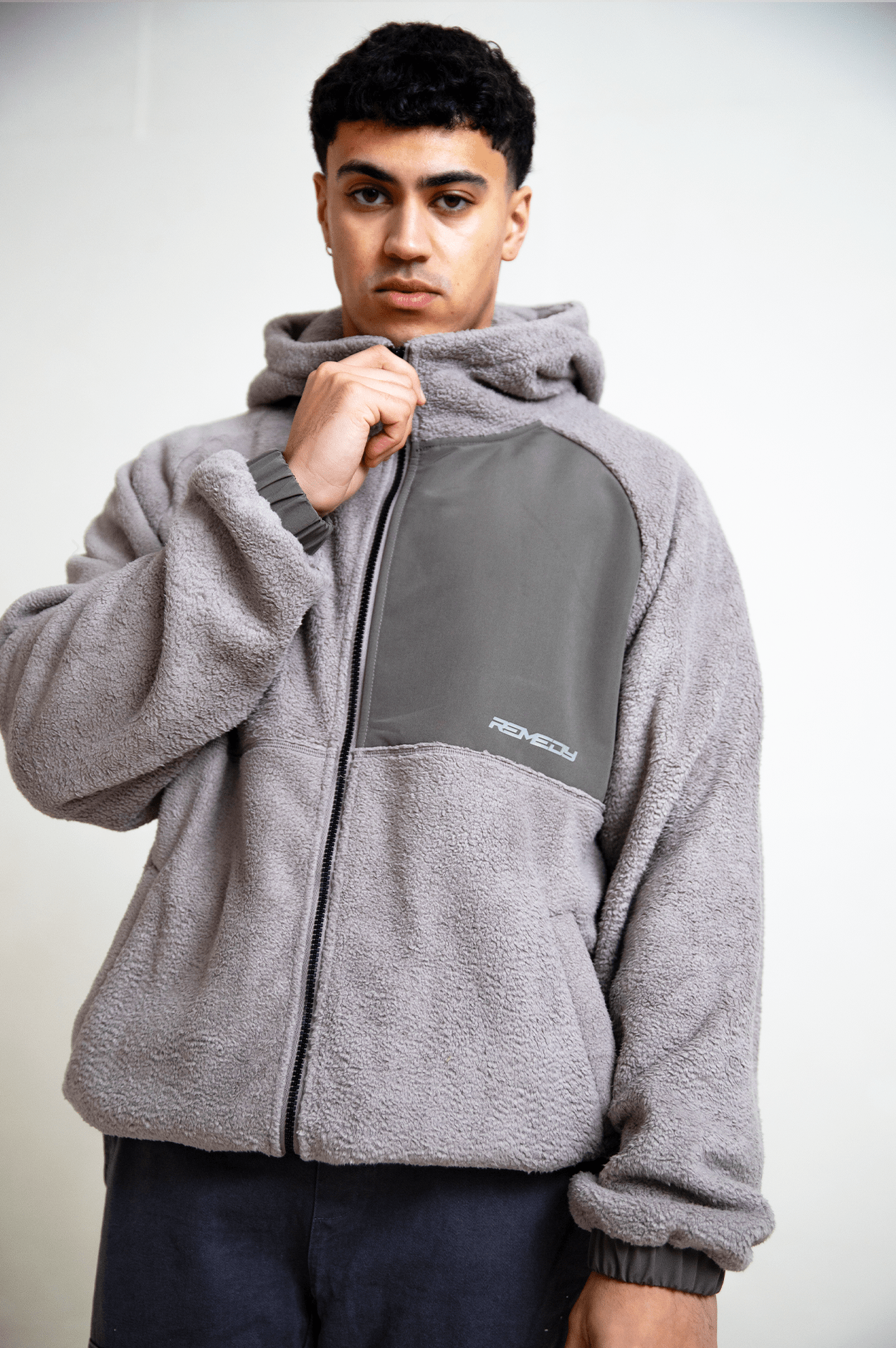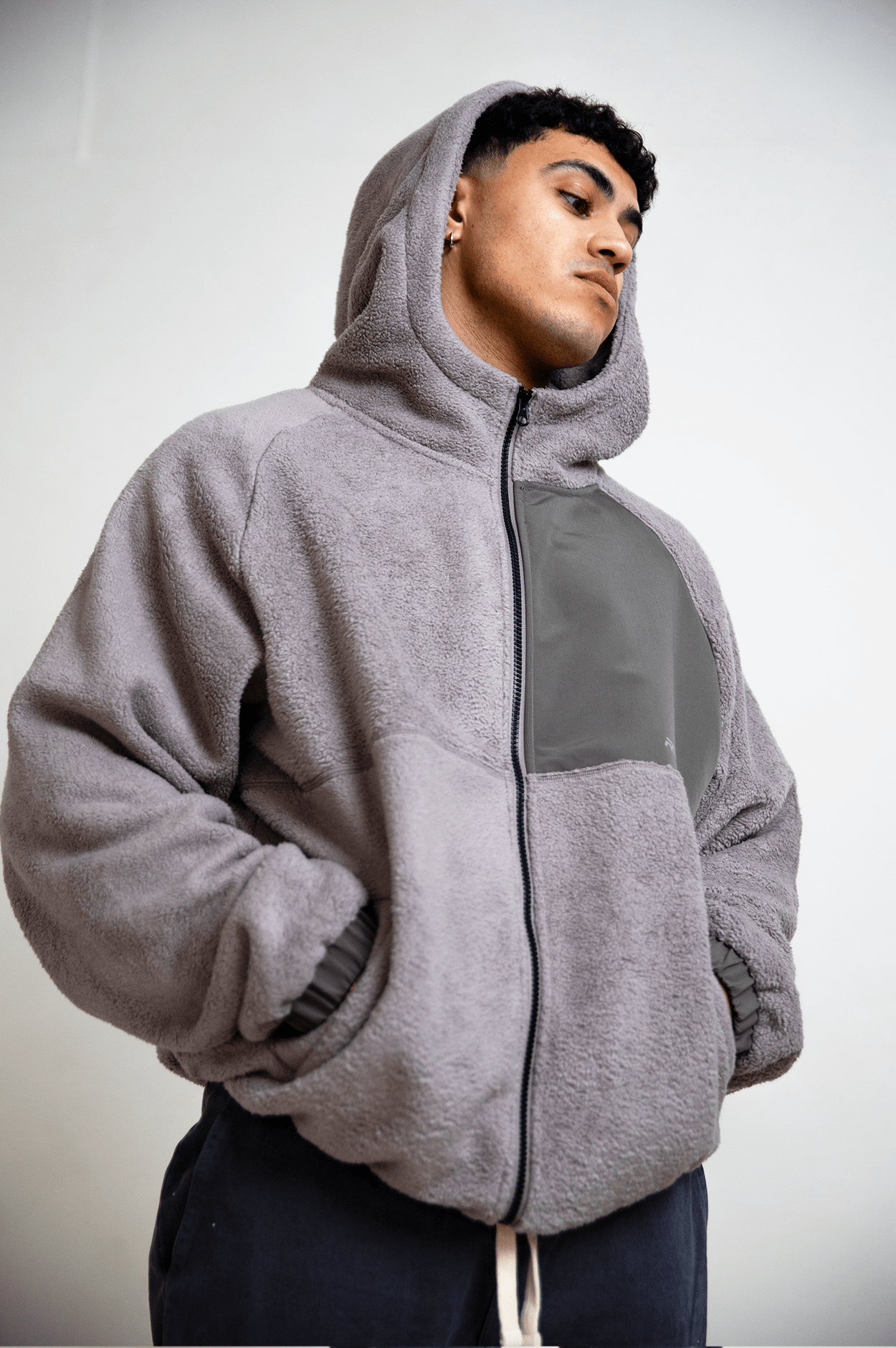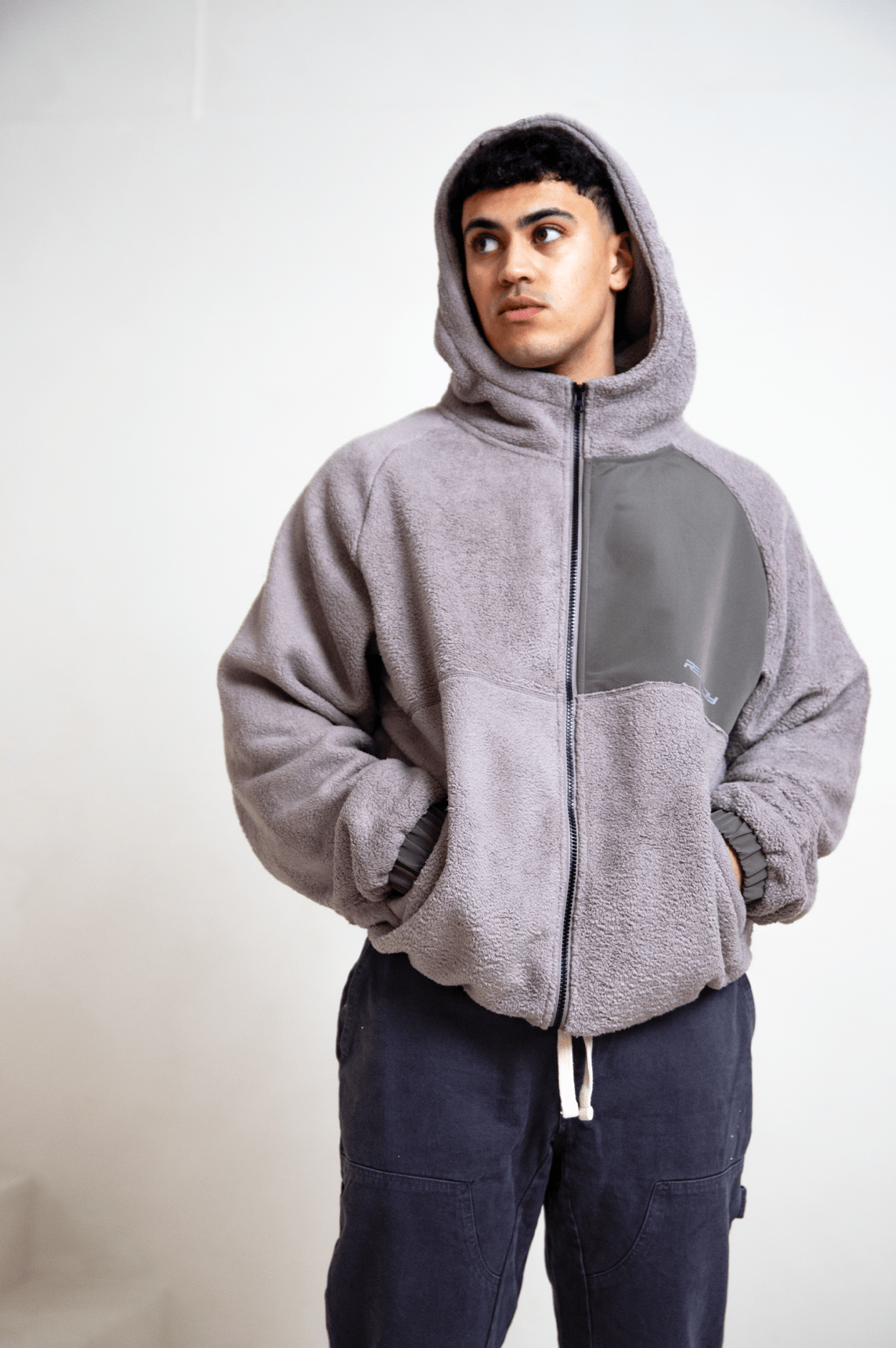 Grey Tech Panel Sherpa Fleece