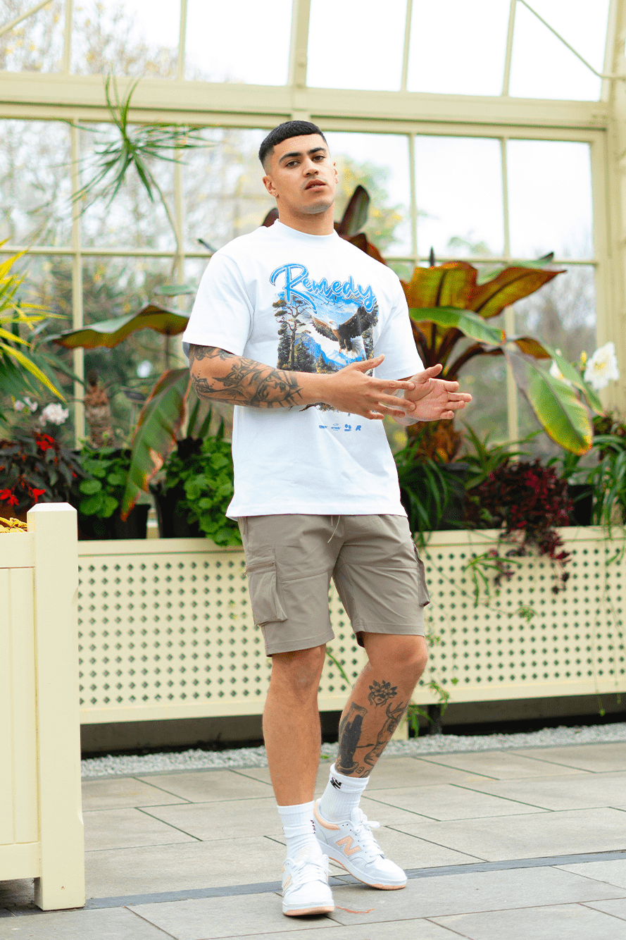 The T-shirt is constructed from a heavy-weight relaxed fit 240gsm cotton. The visual highlight is the is the structure and fit of the silhouette and the overall minimal street aesthetic it compromises.