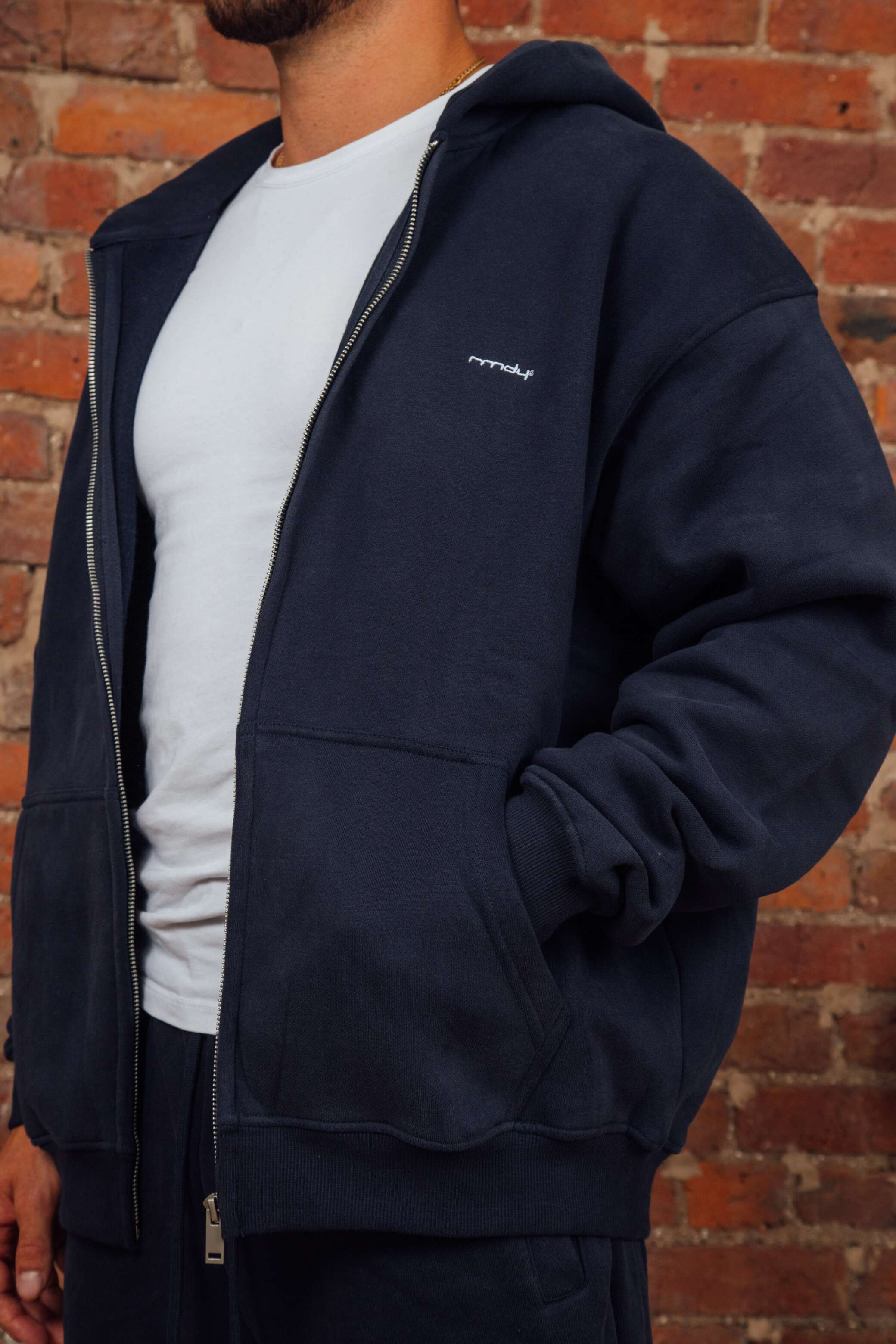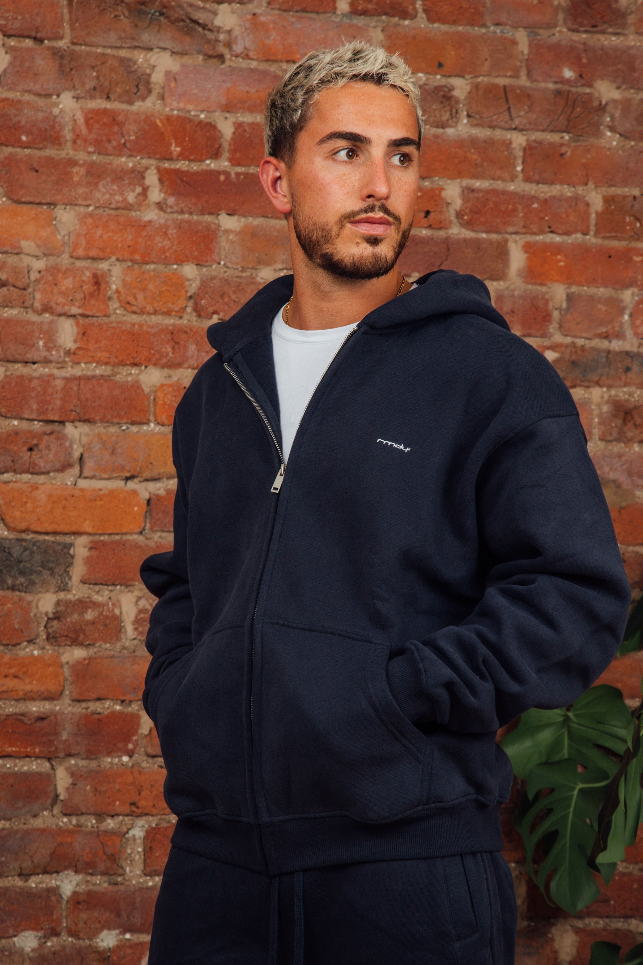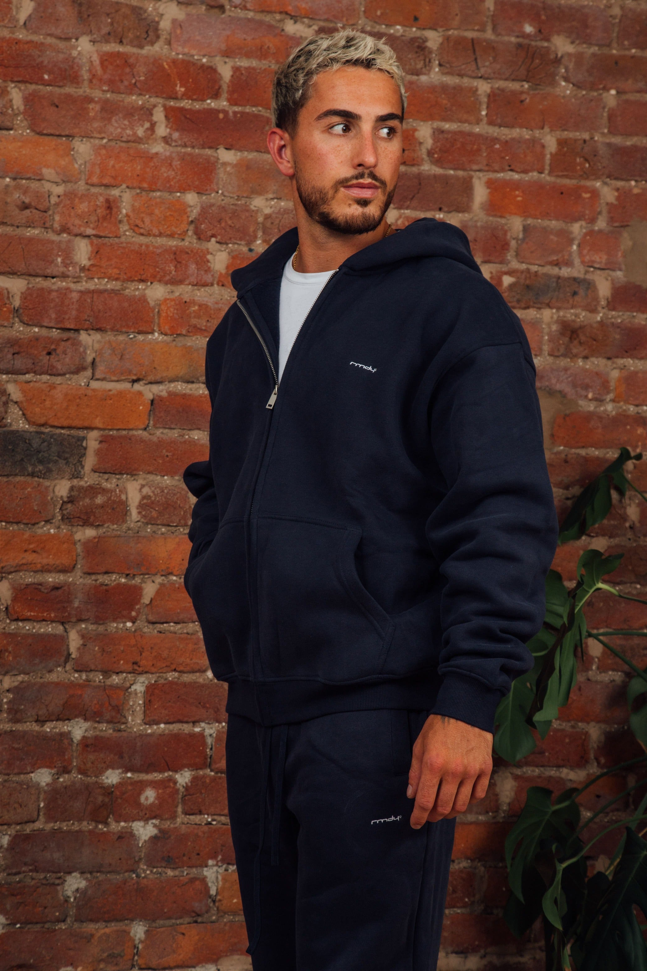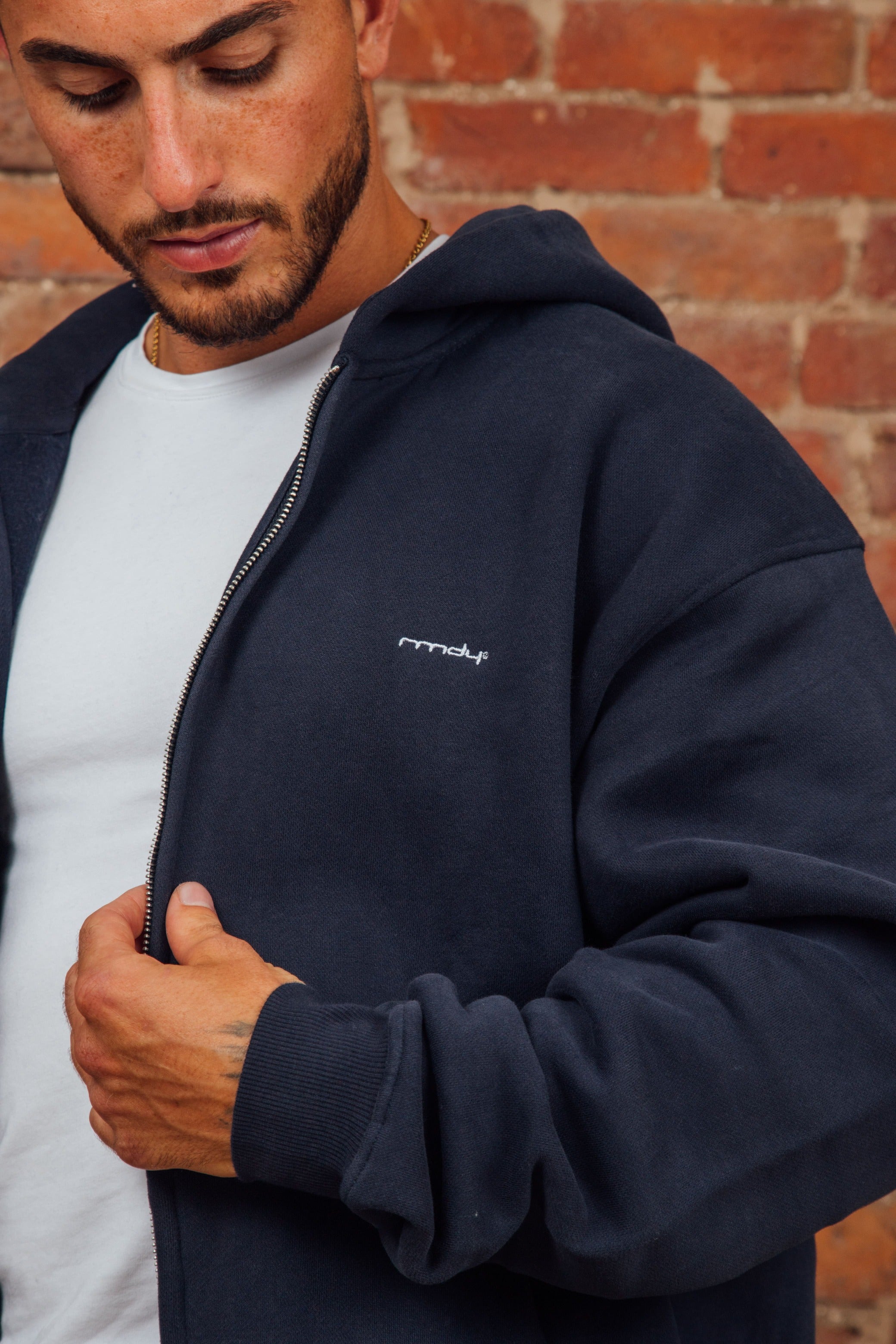 Stay sharp and comfy with the Navy RMDY. Zip Hoodie. Crafted from soft sponge like feel, durable cotton, this hoodie promises long-lasting wear while keeping you perfectly on trend, ready for any adventure or chill session.
